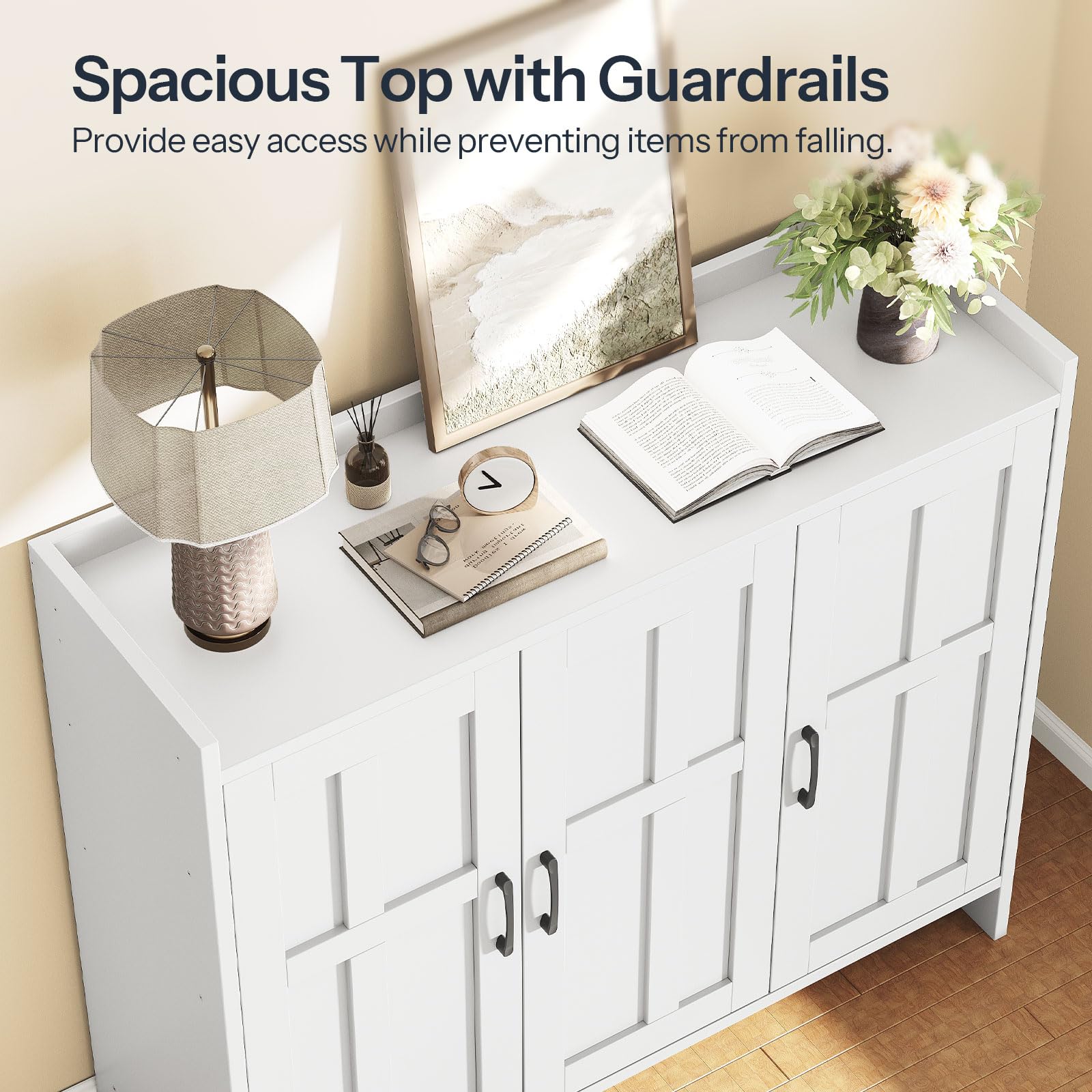 HOOBRO 42.1 inch Large Wooden Shoe Storage Cabinet with 3 Doors