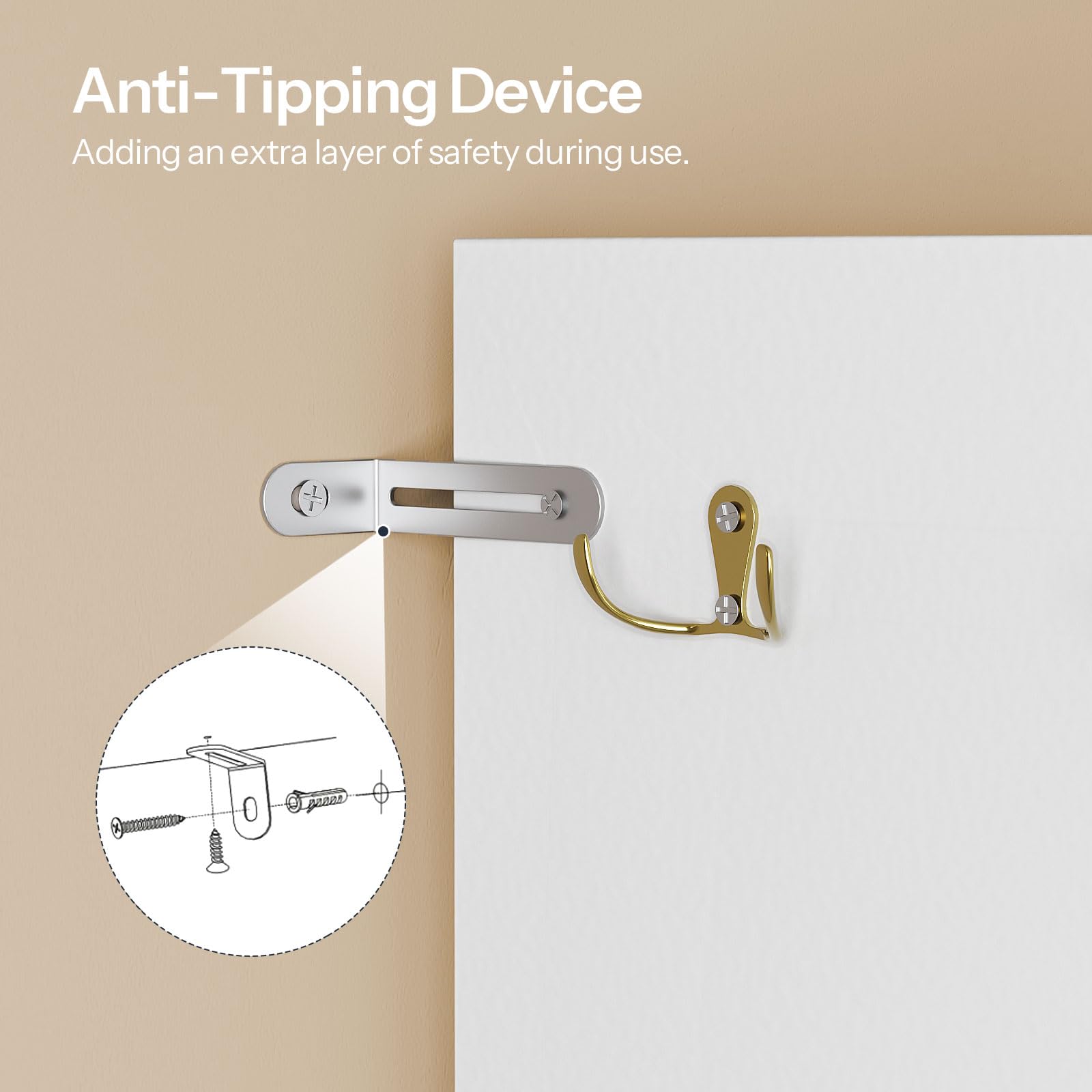- Simple Assembly - Quick and Easy Setup: Assembly is straightforward with all components clearly numbered and a detailed illustrated guide. Two people are recommended for a quicker setup. The anti-tip device requires some tools for proper installation, with clear instructions provided to ensure correct drilling positions for added stability.