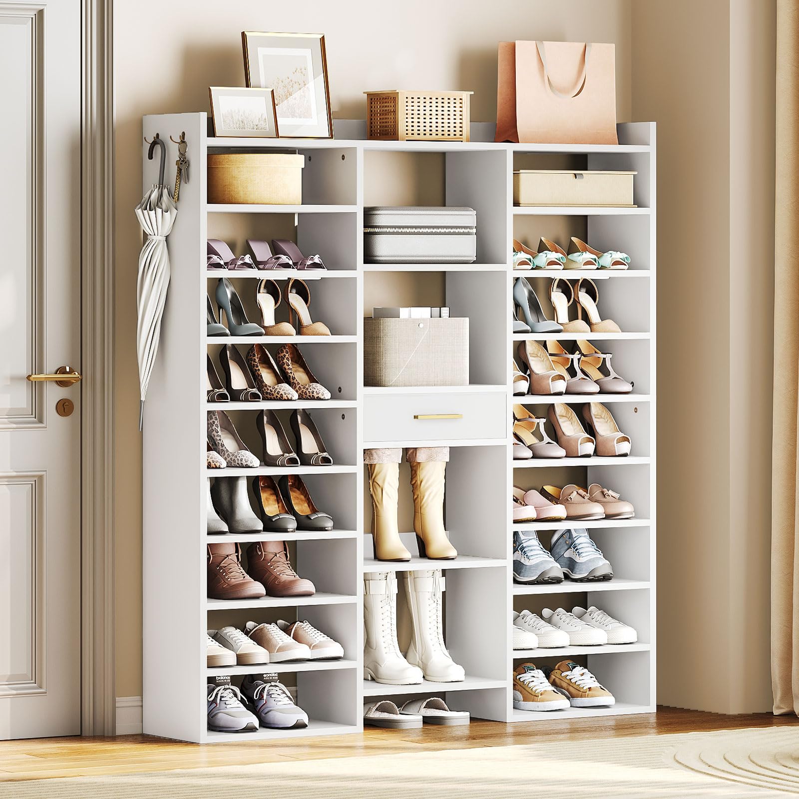 - Sleek and Versatile - Stylish Storage Solution: The white wood-grain finish of this wooden shoe cabinet organizer adds a touch of elegance and simplicity, complementing a variety of home decor styles. Perfect for entryways, foyers, or closets, this shoe rack not only boosts your storage capacity but also enhances the overall visual appeal of your space.