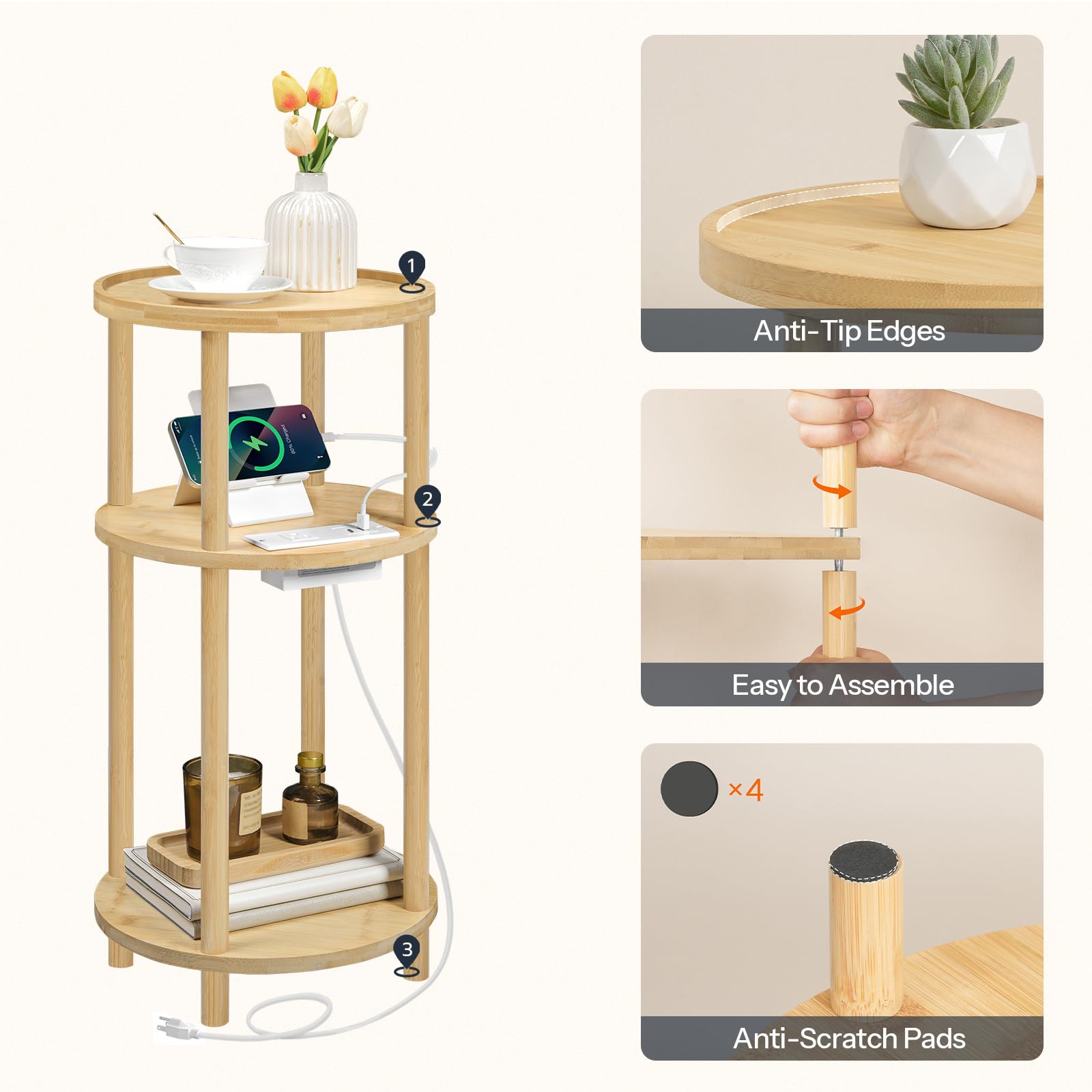 - Easy Assembly: With a unique twist-and-lock structure and detailed illustrated instructions, the end table is quick to set up with no extra tools needed. Give it a twist and you'll have the bamboo table that's both beautiful and practical